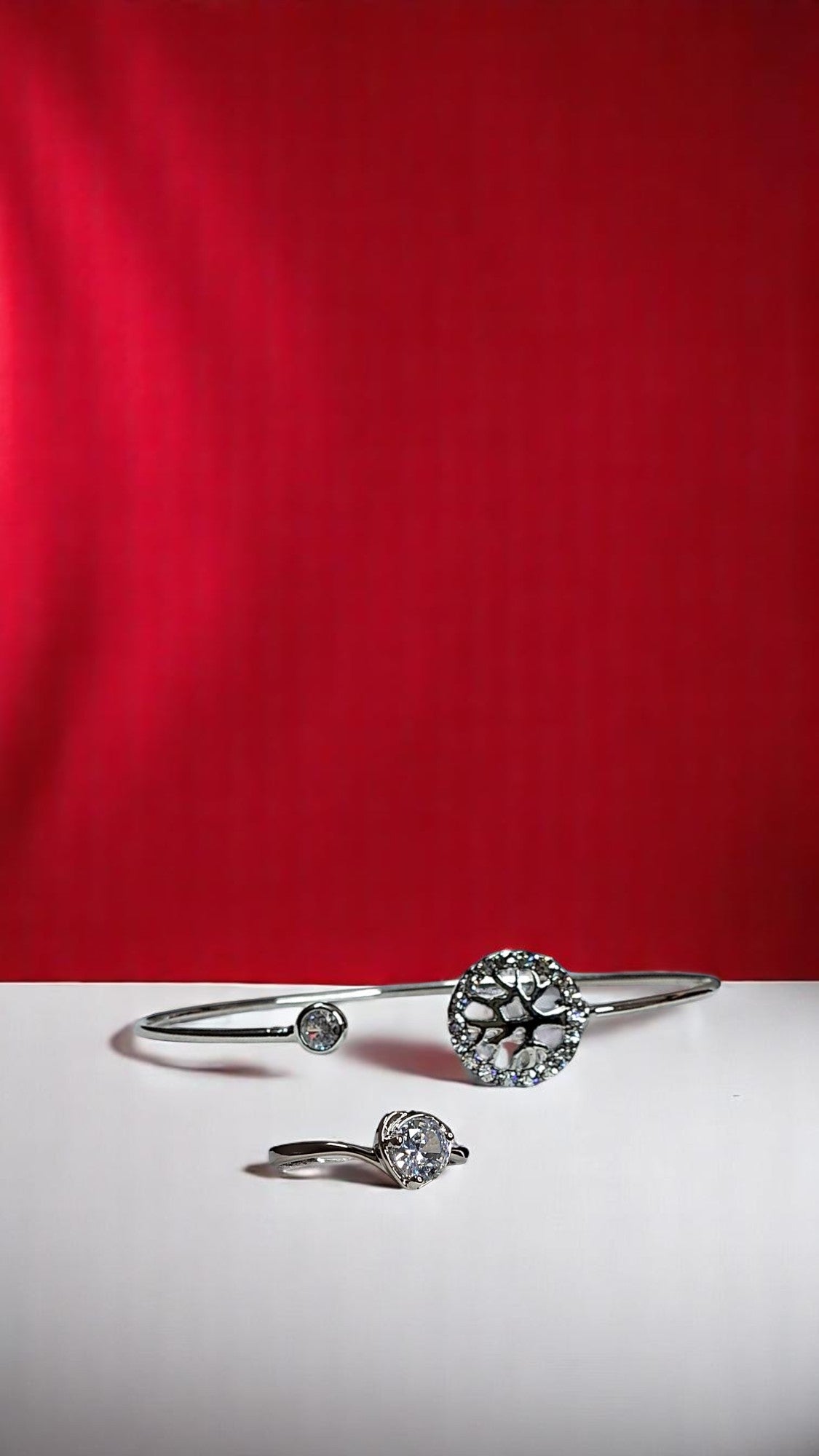 🌳 Design: Stunning Tree of Life charm on the bracelet + a crystal solitaire ring