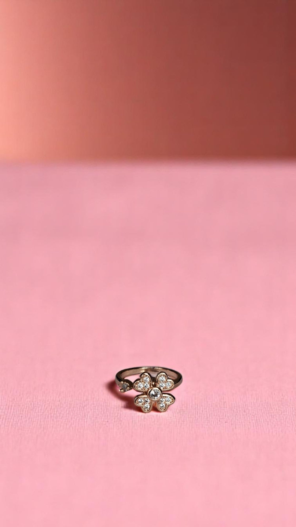 Charming and cheerful, this Korean-style ring captures the innocence of a daisy bloom. With five heart-shaped petals encrusted in crystals and a sleek golden band, itโs a sweet addition to your everyday jewelry.