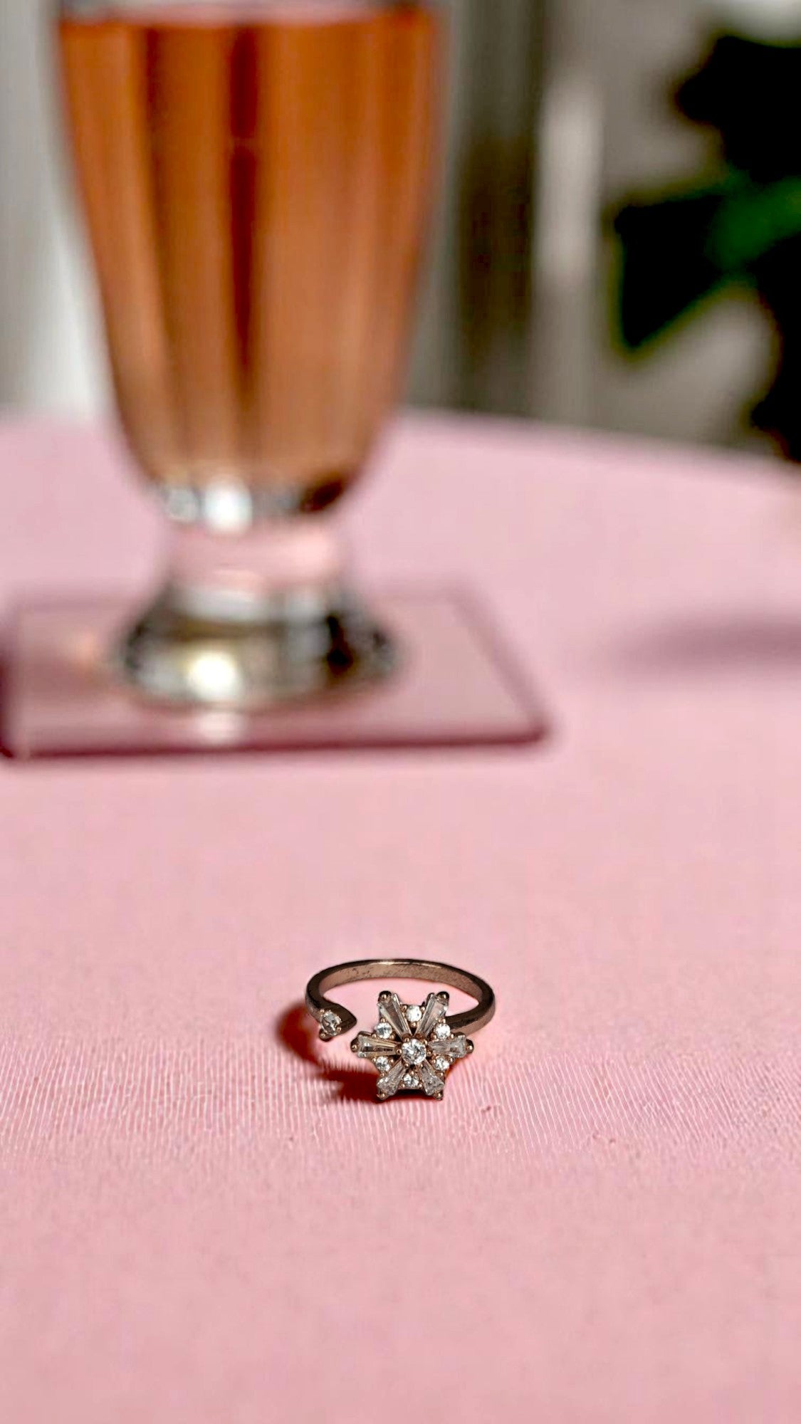 πŸ’ Ring Design: Star-shaped six-point motif with open-end teardrop crystal