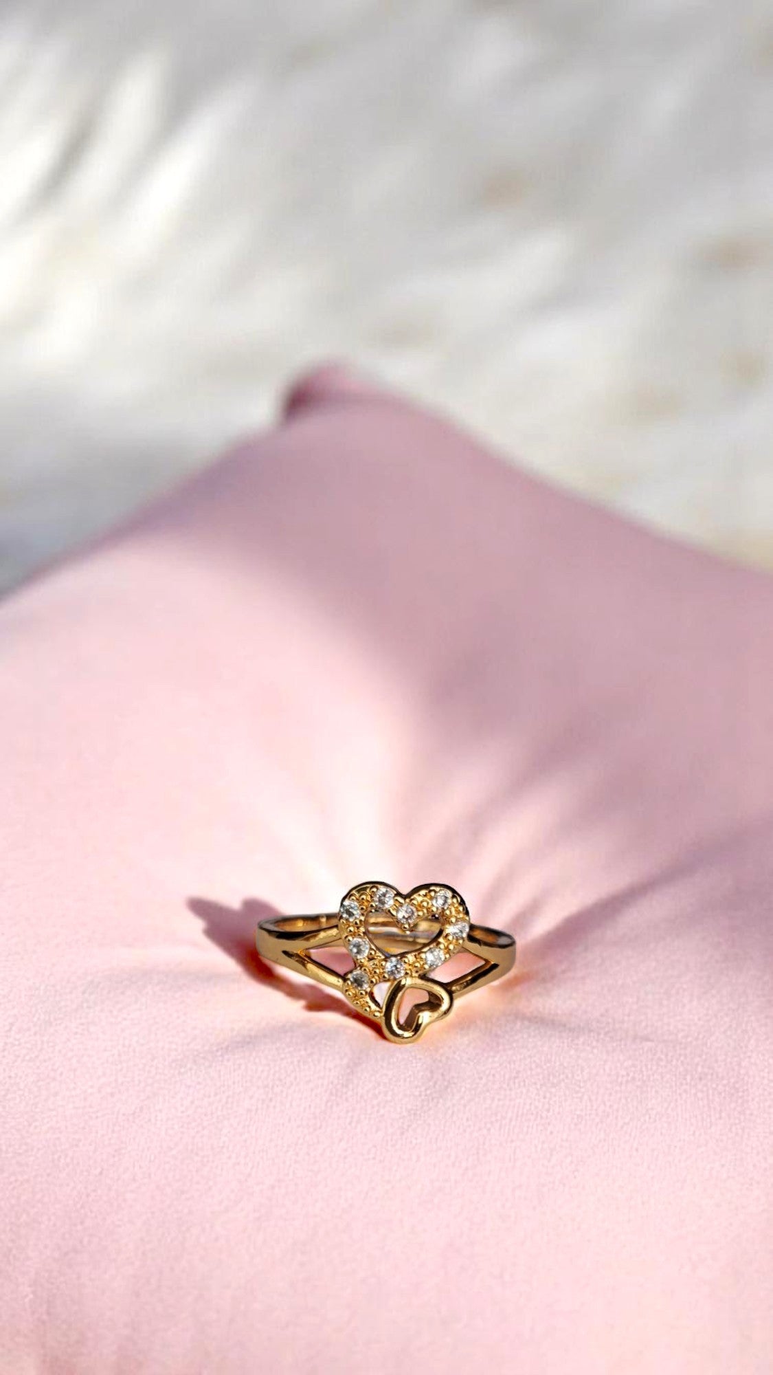 Celebrate love in all its forms with this Korean-inspired golden beauty. Featuring two hearts—one encrusted with crystals, the other a delicate outline—this ring perfectly captures the magic of connection, balance, and unity.