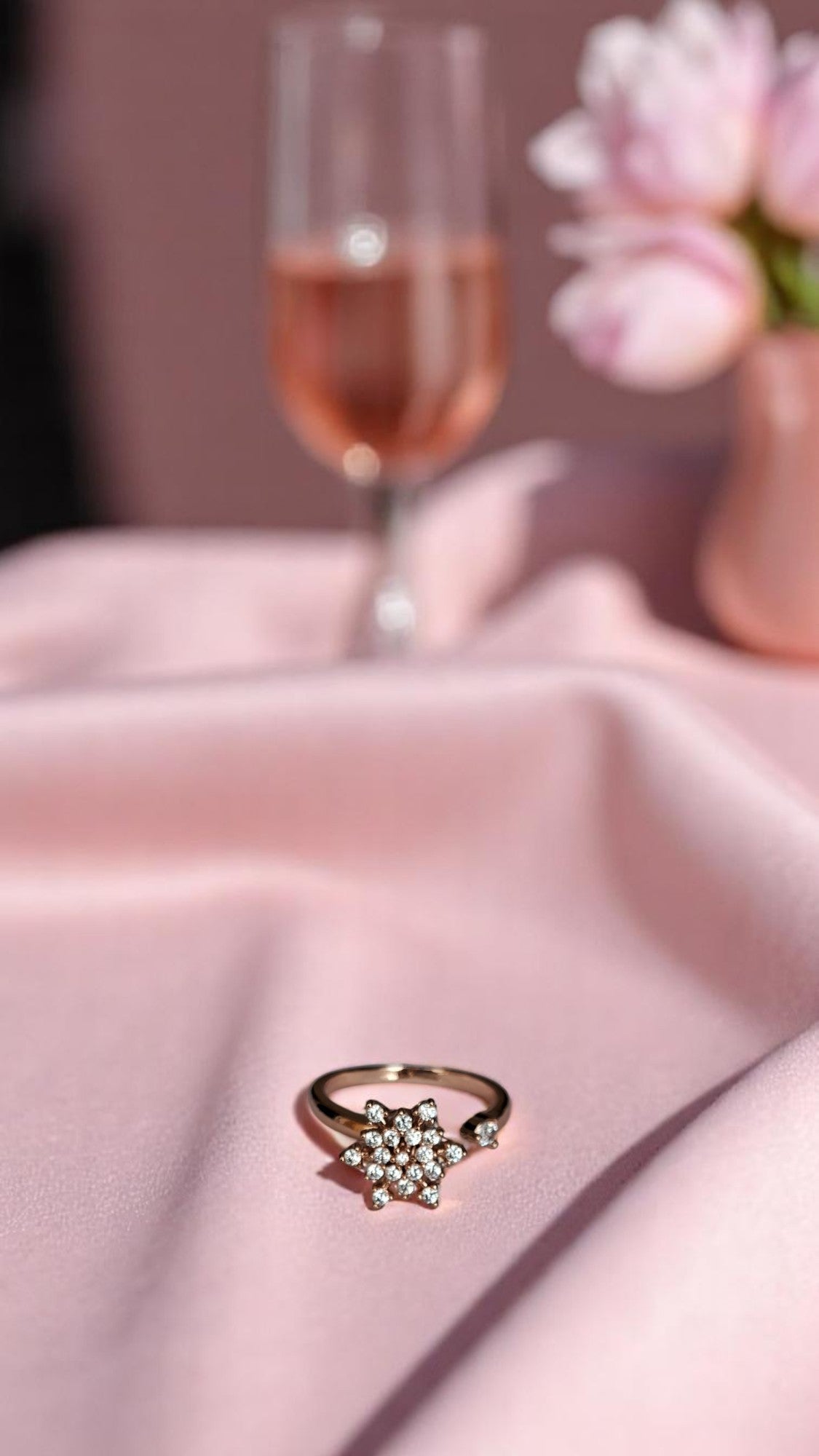 A bold yet graceful statement, this Korean-inspired ring features a galaxy-like cluster of dazzling crystals set in a starburst design. Its soft gold finish and adjustable band make it a go-to accessory for fashion-forward women.